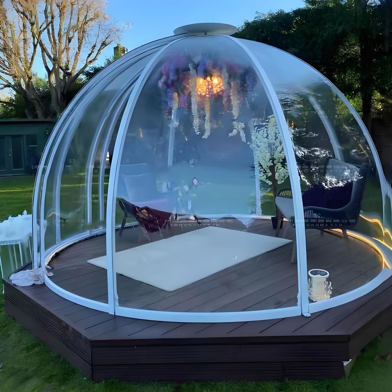 En résumé, une salle de polycarbonate étoilée combine la force et la clarté du polycarbonate avec des technologies d'éclairage avancées pour créer une expérience enchanteuse et immersive.Si utilisé pour la relaxationQue ce soit pour le divertissement ou l'esthétique, ces chambres offrent un aspect unique et captivant qui peut transformer n'importe quel espace.
